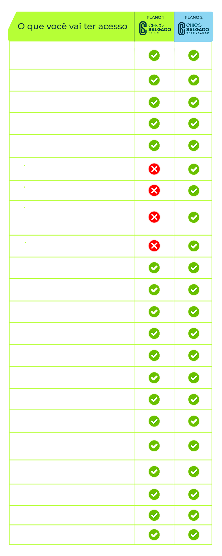 Qualquer pessoa pode treinar com o Chico Salgado, desde que não tenha restrições físicas e/ou clínicas para a prática de exercício físico. Em caso de desconforto físico, preocupação, ou dúvidas, consulte um médico.